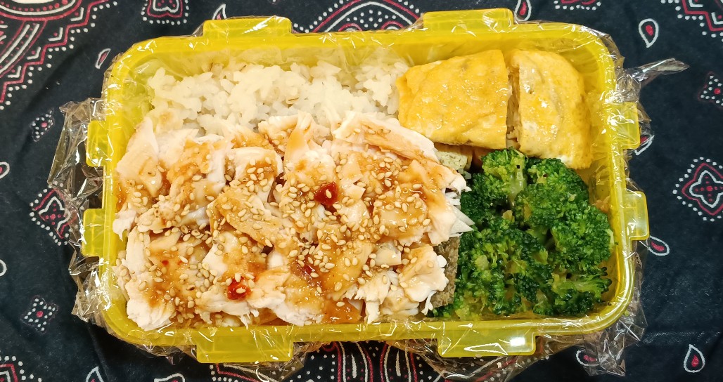 今日のお弁当 ☆忘月忘日☆ Twitter Facebook はてブ Pocket LINE コピー 2025.10.23 なめ茸入り玉子焼き、鶏むね肉120g、すき焼きのたれ味のブロッコリーもち麦入りご飯200gえびカツ、なめ茸入り玉子焼き、すき焼きのたれ味のブロッコリー、鶏むね肉もち麦入りご飯120g(^Q^)