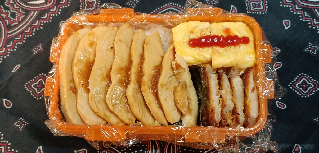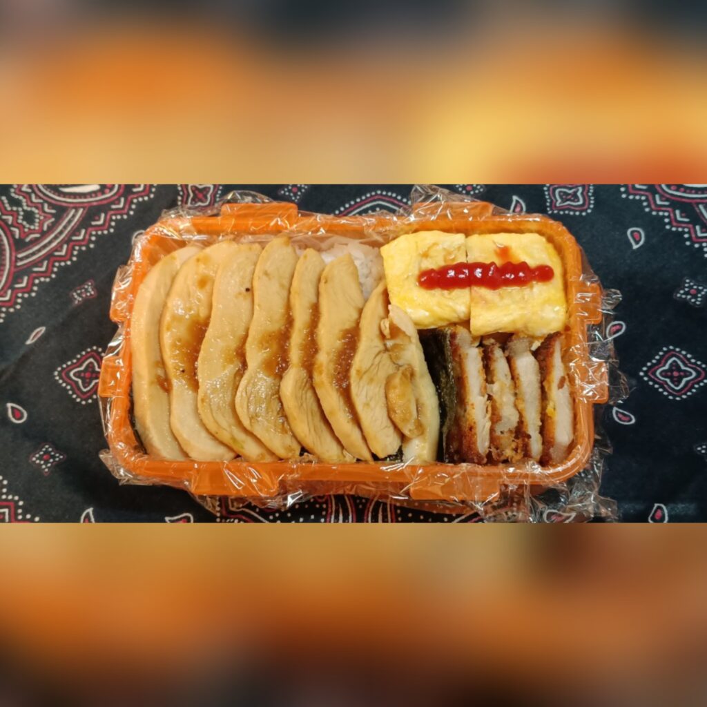 今日のお弁当 ☆忘月忘日☆ Twitter Facebook はてブ Pocket LINE コピー 2025.11.19 カニカマ入り玉子焼き、鶏むね肉110g、カツレツ、ごまドレッシング味のレタス(下)もち麦入りご飯200g(^Q^)