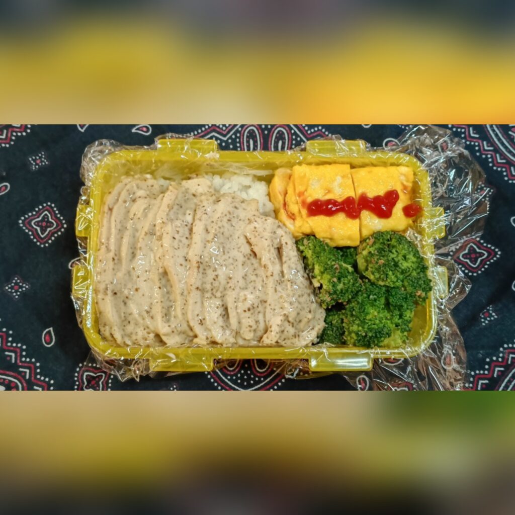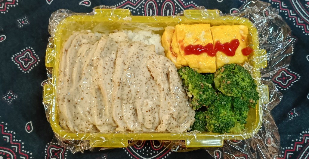 今日のお弁当 ☆忘月忘日☆ Twitter Facebook はてブ Pocket LINE コピー 2026.02.19 カニカマ入り玉子焼き、鶏むね肉115g、焙煎ごまドレッシング味のブロッコリーもち麦入りご飯150g(^Q^)