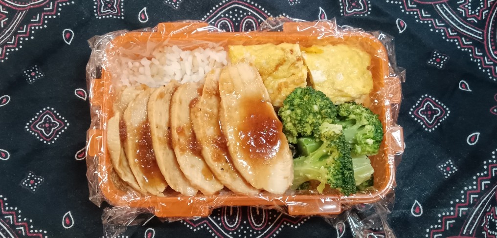 今日のお弁当 ☆忘月忘日☆ Twitter Facebook はてブ Pocket LINE コピー 2025.09.25 なめ茸入り玉子焼き、鶏むね肉126g、胡麻ドレッシング味のブロッコリーもち麦入りご飯200g(^Q^)