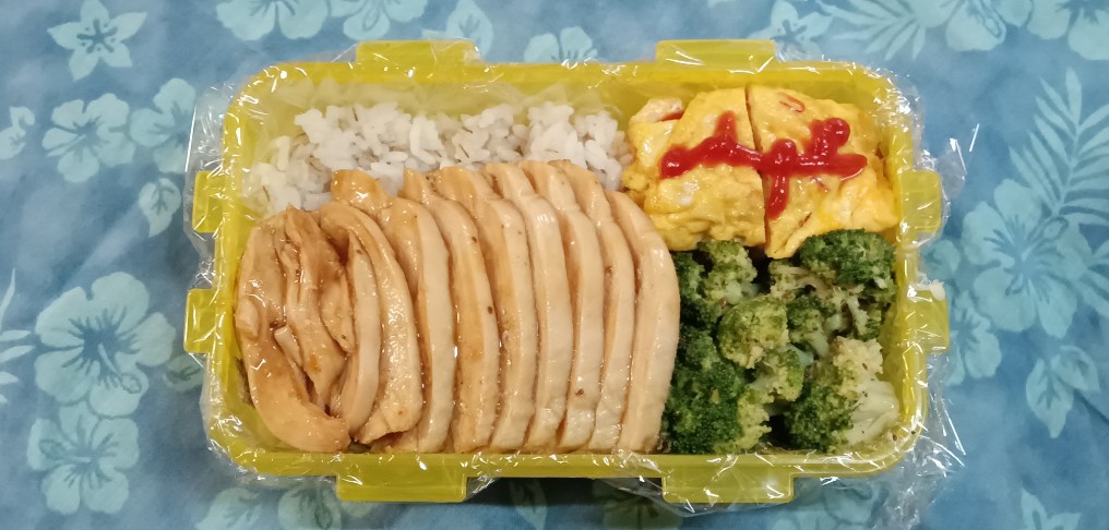 今日のお弁当 ☆忘月忘日☆ Twitter Facebook はてブ Pocket LINE コピー 2025.10.01 カニカマ入り玉子焼き、鶏むね肉112g、焙煎ごまドレッシング味のブロッコリーもち麦入りご飯200g(^Q^)