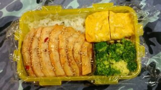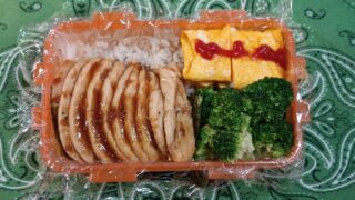 なめ茸入り玉子焼き、鶏むね肉120g、胡麻ドレッシング味のブロッコリーご飯150gなめ茸入り玉子焼き、胡麻ドレッシング味のブロッコリー、鶏むね肉ご飯120g(^Q^)