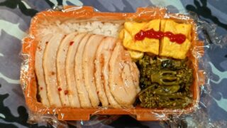 カニカマ入り玉子焼き、鶏むね肉114g、焙煎ごまドレッシング味のブロッコリースティックご飯150g(^Q^)