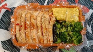 なめ茸入り玉子焼き、鶏むね肉115g、焙煎ごまドレッシング味のブロッコリーもち麦入りご飯150g(^Q^)