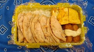 なめ茸入り玉子焼き、鶏むね肉116g、サーモンメンチカツもち麦入りご飯150g白身魚タルタル、なめ茸入り玉子焼き、鶏むね肉もち麦入りご飯120g(^Q^)
