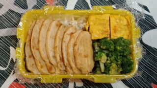 なめ茸入り玉子焼き、鶏むね肉123g、焙煎ごまドレッシング味のブロッコリーもち麦入りご飯150g(^Q^)