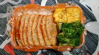 カニカマ入り玉子焼き、鶏むね肉118g、豚焼肉ご飯150g(^Q^)