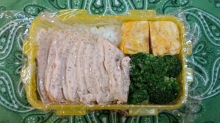 なめ茸入り玉子焼き、鶏むね肉121g、深煎ごまドレッシング味のブロッコリーご飯150g(^Q^)
