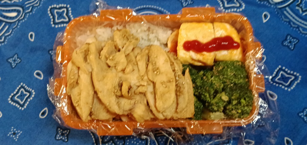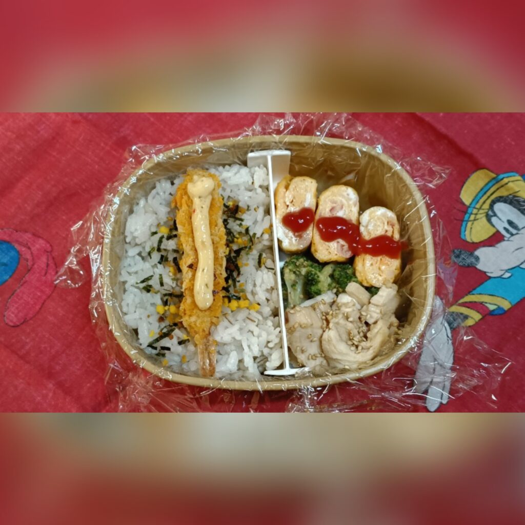 今日のお弁当 ☆忘月忘日☆ Twitter Facebook はてブ Pocket LINE コピー 2025.10.20 カニカマ入り玉子焼き、鶏むね肉110g、直火焙煎ごまドレッシング味のブロッコリーもち麦入りご飯200gエビフライ、カニカマ入り玉子焼き、直火焙煎ごまドレッシング味のブロッコリー、鶏むね肉もち麦入りご飯120g(^Q^)