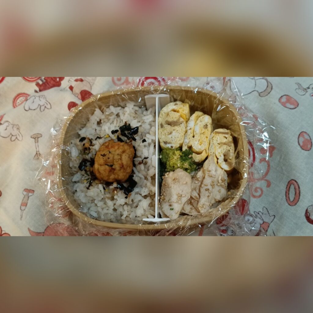 今日のお弁当 ☆忘月忘日☆ Twitter Facebook はてブ Pocket LINE コピー 2025.12.01 なめ茸入り玉子焼き、鶏むね肉113g、ごまドレッシング味のブロッコリーもち麦入りご飯200gえびとひじきのふんわり揚げ、なめ茸入り玉子焼き、ごまドレッシング味のブロッコリー、鶏むね肉もち麦入りご飯120g(^Q^)